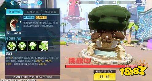 1、数码宝贝新世纪玄武兽是主城挑战的boss,玩家每天拥有3次挑战的机会,在这个挑战过程中玩家要尽可能地打出更多地伤害,三级挑战地伤害累计越高,玩家获得地奖励也就越高,玩家挑战地奖励会在活动结束的时候发放;