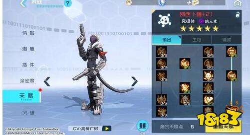 2、数码宝贝新世纪别西卜兽天赋点选择同样也是突出输出,需要加满的天赋是暴击、爆伤强化和致命一击,作为主要输出天赋奥义技是必不可少的技能,其中知难而上和恃强凌弱是比较符合别西卜兽特点的天赋,也是需要拉满的,剩下的辅助天赋中需要加满的有吸能护甲和精神集中,这些全部都拉满之后就可以自由搭配了,具体的改变没有什么限制;