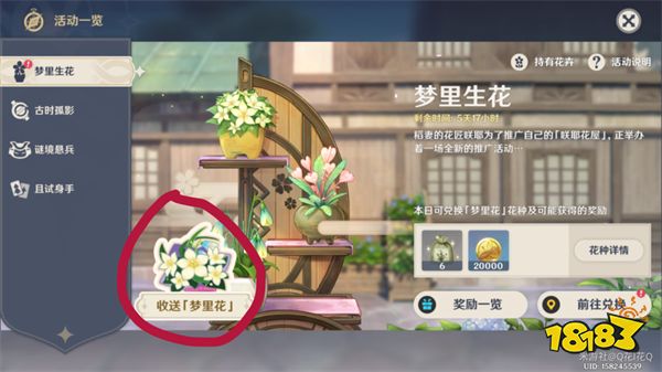 4、在游戏内左下角有收送梦里花选项,玩家们可以和朋友们互相换花朵哦。