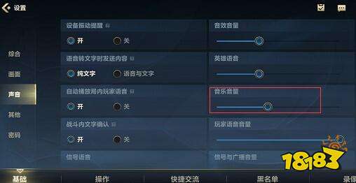 2、lol手游背景音乐的调整方式在主界面的设置中,玩家找到设置中的基础,基础页面中找到声音,在屏幕的右半边就会有所有的音量调节按钮了,音乐音量就可以调整最近上线的背景音乐音量,上线的其他音量玩家要也可以根据自己的需要进行调整,毕竟不是每一个玩家都需要特别大声的音乐、音效等等。