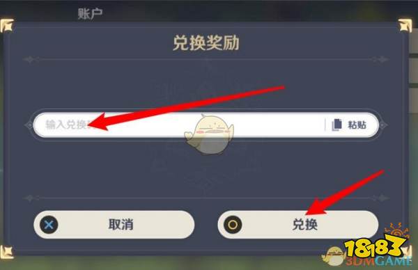 兑换途径打开原神,点击左上角的头像,点击左侧的设置图标,进入设置界面,点击账户,然后点击兑换码后面的【前往兑换】,输入兑换码,点击兑换就可以了。