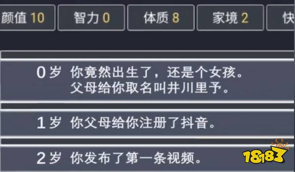 这个开局属性的选择非常的重要,要选择10点颜值、0点智力、8点体质、2点家境、0点快乐,选完这个还不能百分百触发,还是比较的看运气的,没有触发的玩家们建议多试几次。