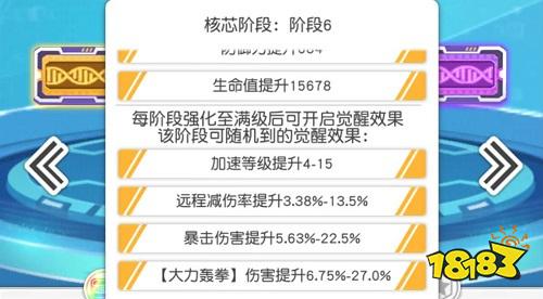 6. 核芯阶段6,同上推荐暴击伤害提升/【大力轰拳】伤害提高,进一步提高输出上限,尽可能做到一拳打出倒一人,然后乘胜追击连续出拳清场。