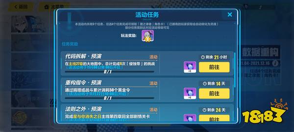 6)活动期间,参与主线、支线、挑战「侵蚀带」等方式,可以获得「情报点数」。达到指定「情报点数」,即可在奖励面板领取活动奖励。