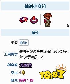 在泰拉瑞亚这款游戏中,神话护符无法用于合成任何物品。神话护符指的是神话护身符,该物品无法用于合成其他物品,其效果是提供生命再生并使治疗药水的冷却时间缩短25%。神话护身符是由再生手环和点金石合成获得。
