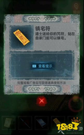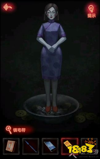 20、返回灵堂将钟放到大爷灵像旁边的蓝色垫子上,这下鬼打墙就没有了,之后进入楼中一直上到九楼,点击我们的房门就会进入剧情,点击自己的家门首先贴上镇宅符,空白符上面贴上贴纸,这样第三章就结束了。