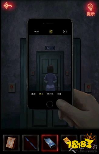 10、来到7楼点击地上的符咒,根据手机照相方法来到3楼,点击大门可以把门上的图像撕下来;