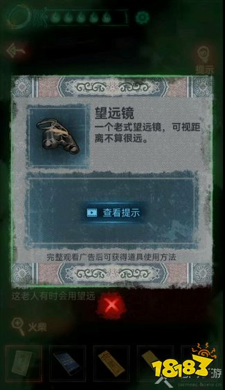 17、在柜子里面的到一个望远镜,来到六楼点击窗口使用望远镜观看,这个时候对面会给到3个提示;