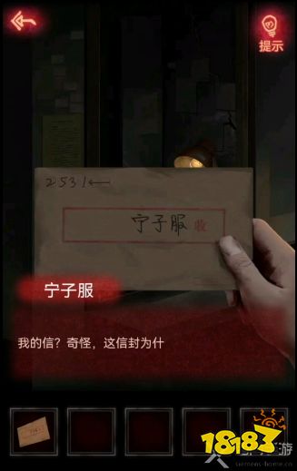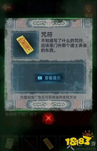 5、进入后可以在电梯上面捡到咒符,接着根据信封左上角的提示点击信封箱,得到一个奇怪的零件;