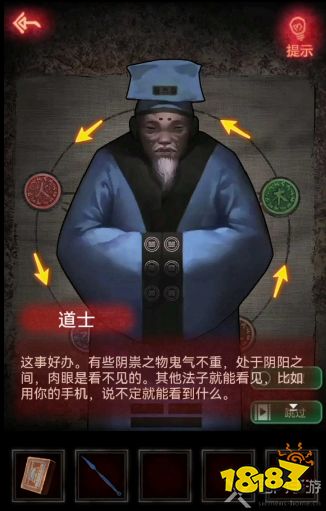 6、之后将咒符给道士进行占卜,这个占卜法阵的提示,是花圈上面的颜色,小游戏过后得到镇宅符咒;