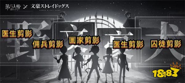 第五人格文豪野犬联动活动内容:文豪野犬联动海豹立绘中所展示的五位动漫角色分别是太宰治,中岛敦,江户川乱步,与谢野晶子以及国木田独步;根据玩家们的相关猜测跟这五位动漫角色联动的庄园角色分别是佣兵,画家,医生,小说家和囚徒。