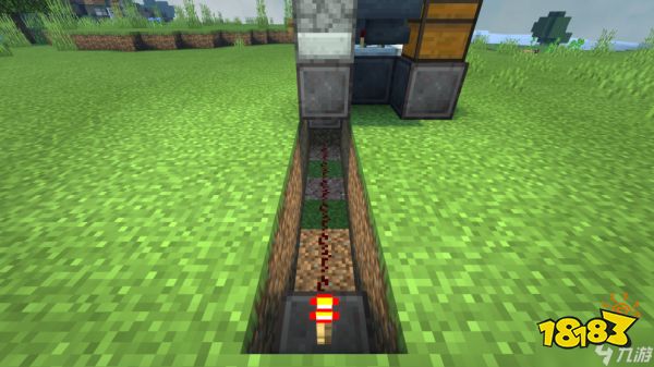 在地面上挖出一些空间,依次放置红石粉、红石中继器和一个普通方块