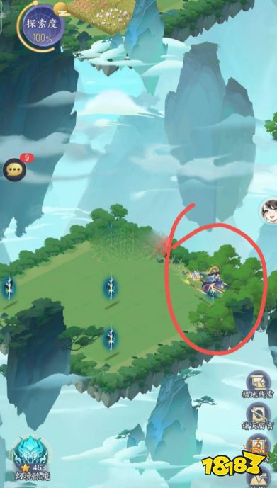 1、通关办法:一直走树多的传送口,如果分不清树多少,那就一直走“震”传送口,两种办法皆可。走完一遍就可以100%探索了。