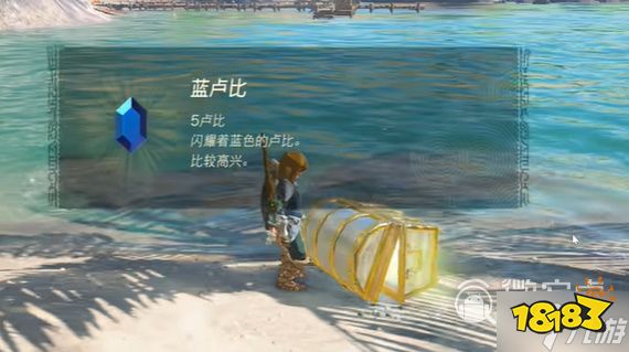 随后玩家需要在附近的水下进行探索,在这里可以找到一个水下宝箱,打开发现宝箱中的是蓝色卢比。