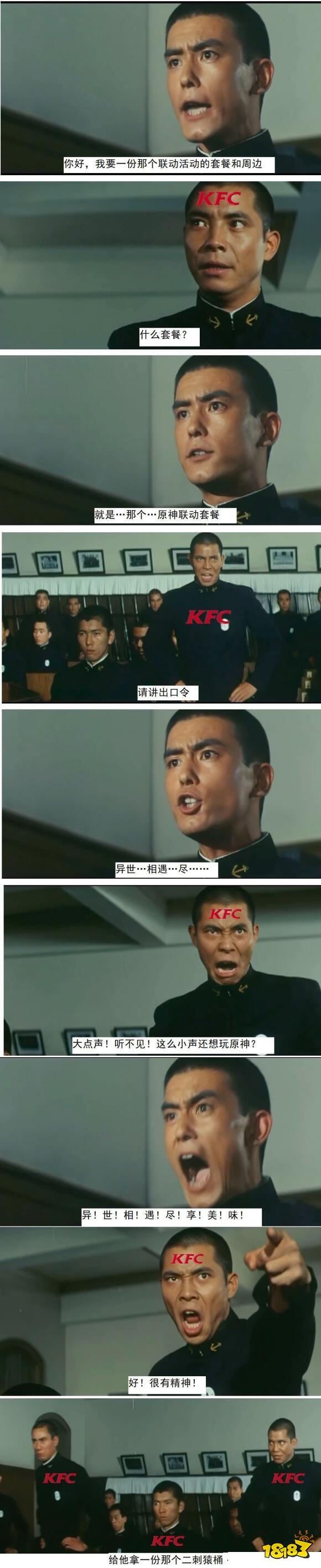 异世相遇尽享美味什么梗?近期关于原神联动KFC的联动套餐引起了不少小伙伴的吐槽,因为想要获取联动的徽章需要在大庭广众下说出口令而非常的羞耻。接下来就让我们来看一看小伙伴们创作的社会性死亡表情包吧。
