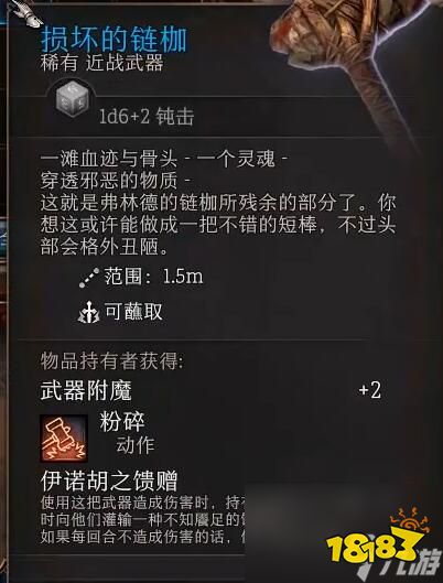 上述信息就是有关于博德之门3损坏的连枷在哪的详细资讯了,这个武器其实非常强力,当你攻击敌人的时候,你将会获得1d6的血量,并且会给敌人带来无穷无尽的饥渴感,让敌人在你的攻击下变得疯狂。