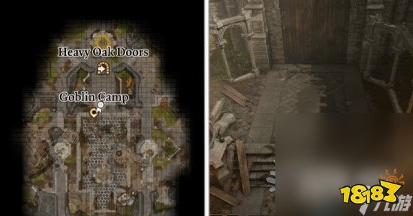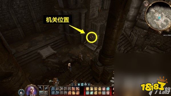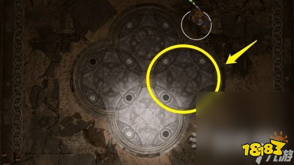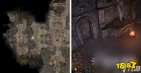 谜题解法:破解石盘谜题,或直接对上锁的门附近的机关使用盗贼工具即可跳过此谜题(位置参考下方图片),需要通过感知检定