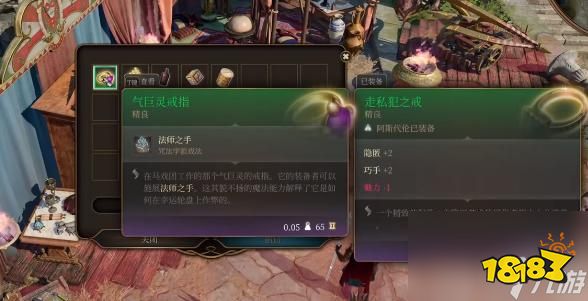 3、随后选择队伍里的盗贼,使用万物皆可偷技能,获得商人作弊的道具【气巨灵戒指】。