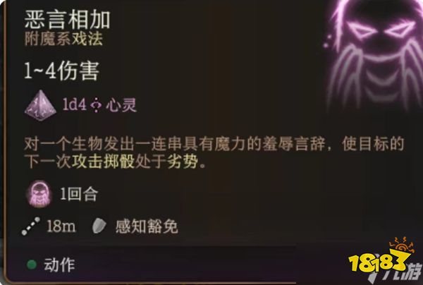 博德之门3恶言相加的主要作用就是对一个生物发出一连串具有魔力的羞辱言辞,这个伤害是能进行叠加的再次受到伤害的时候是能进行叠加总体上相当的不错。