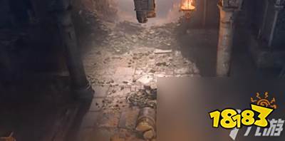 2.来到下图位置后向右侧移动,看到黄色山丘废墟并沿着石壁继续前进;