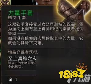 以上就是本期博德之门3力量手套词条属性介绍内容,感兴趣的玩家可以参考本篇攻略哦。后续想要了解更多相关攻略的小伙伴,可以关注18183,这里每天都会推送最新最全的攻略,我们下期再见~