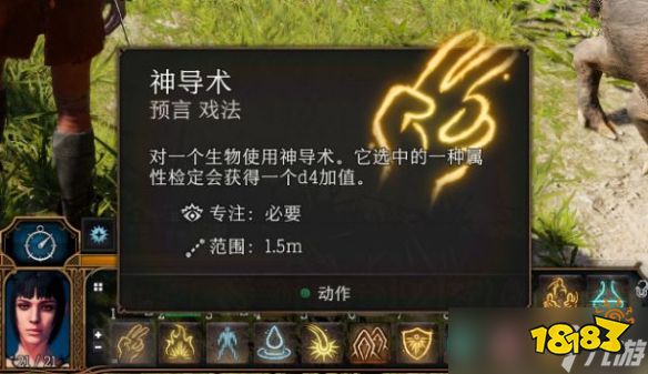于是你可以在剧情/对话让牧师给你拍一个神导术,你会发现所有的游说、欺瞒、敏捷等技能检定都会减少1~4的难度。