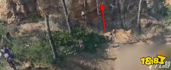 1、我们需要来到翠绿林地,来到左边一出颜色很浅的石壁上跳上去。