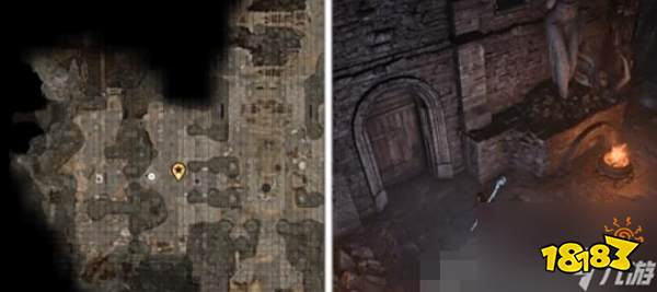 2、使用盗贼工具可以打开西南边大门,就在火盆的边上。