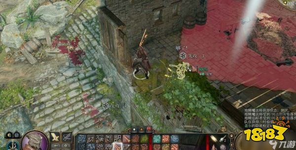 3、盗贼的偷袭技能触发需要满足具有优势、目标敌人1周围1.5米内有队友这两个条件。玩家可以按shift可以查看敌人警戒范围,在红圈外面执行隐蔽动作隐蔽自己之后会进入隐蔽状态进行攻击。