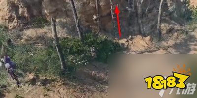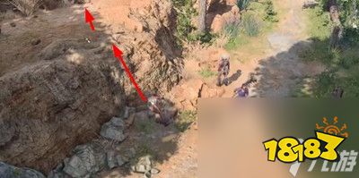 2.接着来到下图岩壁,按照箭头指示方向往前走,并爬山岩石;