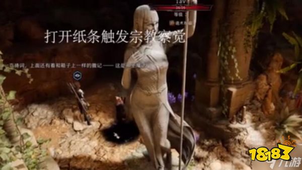 1、我们先控制一个宗教角色,让角色来到雕像的后面。