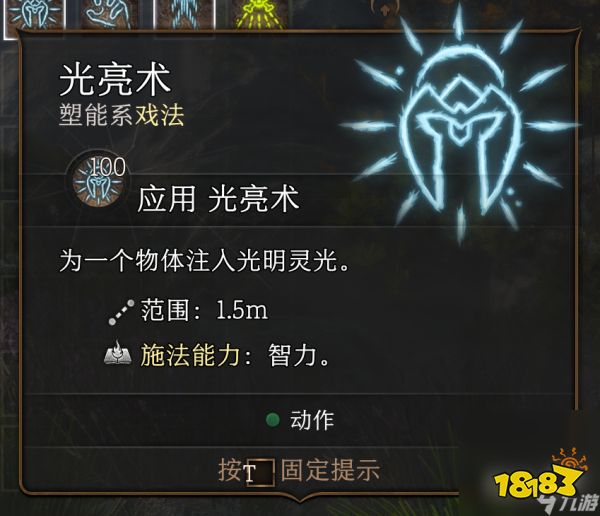 光亮术,可以将一个物体变成发光源。经典例子就是给吉斯妹武器放光亮术这样在幽暗地域作战不会有劣势