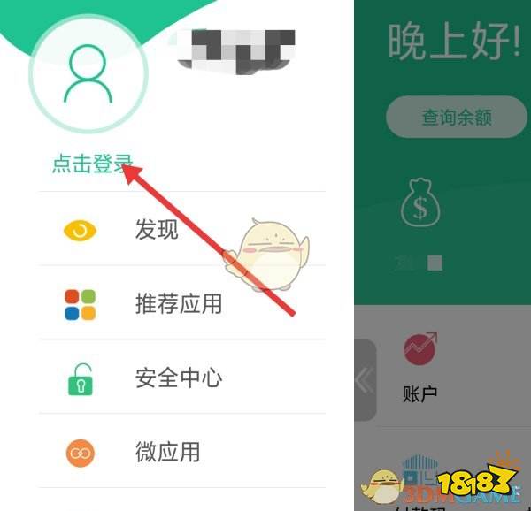 1、打开民生银行APP,点击页面左上角箭头所指的地方。