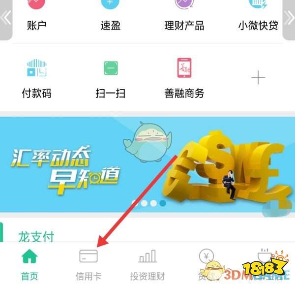 3、登录完成后,点击箭头所指的“信用卡”。