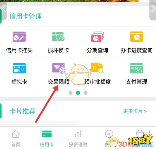 4、在信用卡页面里,点击“交易限额”。