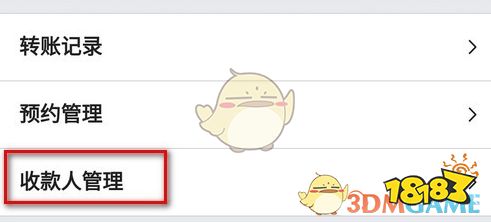 5、点击三点图标后,跳转到更多界面,点击“收款人管理”。