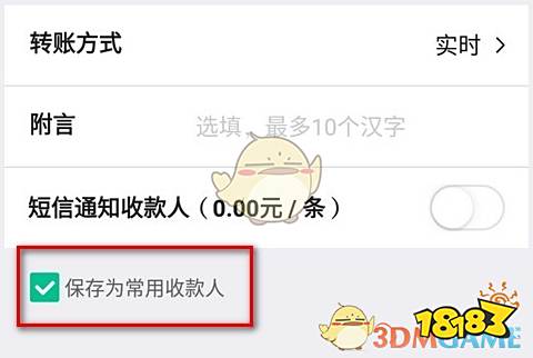 9、有一些不常用的收款人,如果不想被保存,在转账付款录入收款人信息时,把保存为常用收款人的勾去掉,这样就不会保存此收款人的信息及账号了。