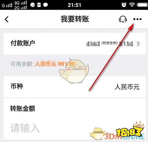4、返回我要转账的界面,点击页面右上角的三点图标。