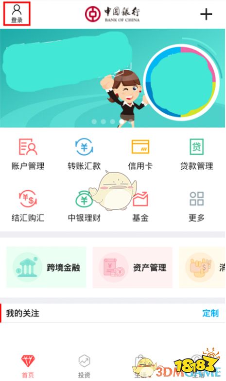 1、打开中国银行手机客户端,点击软件窗口左上角的“登陆”按钮,进入登陆页面。