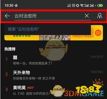 2、在搜索框输入“云村治愈所”,然后点击“搜索”