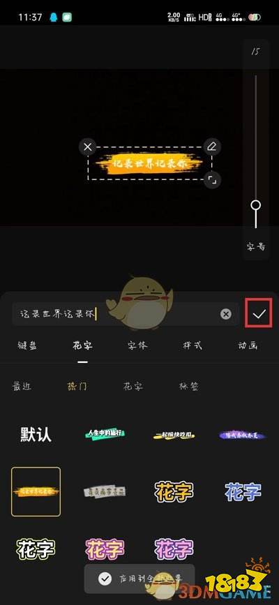 4、输入我们需要添加的字幕内容,然后选择字体的样式、字体、花字、动画等等,编辑完成后,点击右侧的【完成】;