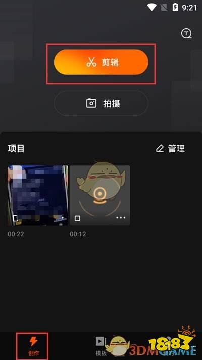 1、打开手机中的快影APP,在创作页面选择一个需要添加字幕并且字幕不消失的视频,进入剪辑页面;
