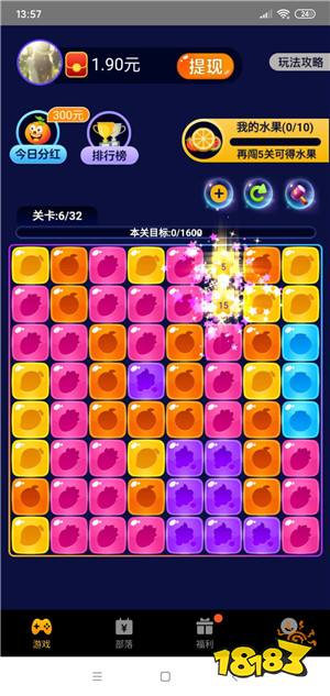1、闯关升级即可领红包,消耗水果还可兑换现金红包或水果包邮寄到家;