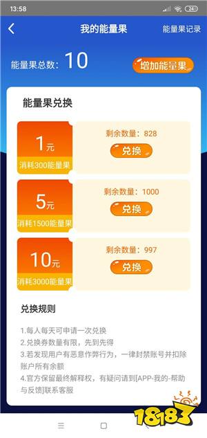 3、能量果还可以兑换成现金,每人每天可申请一次兑换,300能量果=1元;