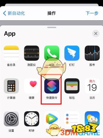 7、点击添加操作,点击图中的app选项,选择快捷指令