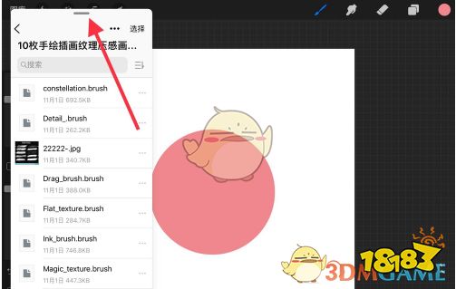 3、最后我们松开就可以看到右侧有一个小屏幕,就是分屏了,然后找到我们需要导入的笔刷;