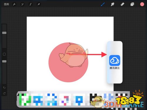 1、打开procreate软件,点击一个画布,然后从平板最下方往上滑动,会出现一个灰色按钮,继续往上滑动即可看到很多图标,如下图所示;