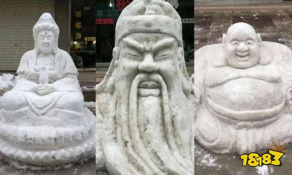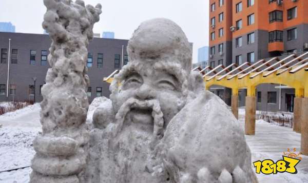 首先第一幅是来自辽宁省沈阳市一市民堆的“寿星老”雪人,高1.8米,左手托蟠桃,右手拿龙头拐杖,长长眉毛和胡须,大大额头,双耳垂肩,一双笑眼。其用雪堆出来的效果非常逼真,让人们看来纷纷用手机出来拍照,这将“寿星”的模样生动的展示出来,在抖音上引起纷纷转发。