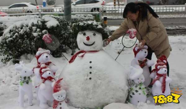 而第二幅江苏省宿迁市民堆的雪人。这个雪人全身周围还有着一堆“小雪人”,然后用红色的围巾进行点缀一下,在雪白的世界勾起了许多人的童年回忆,寒冷的天气也抵挡不住民间高手堆雪人的热情。让周围的孩子们围在这里都不想离开。