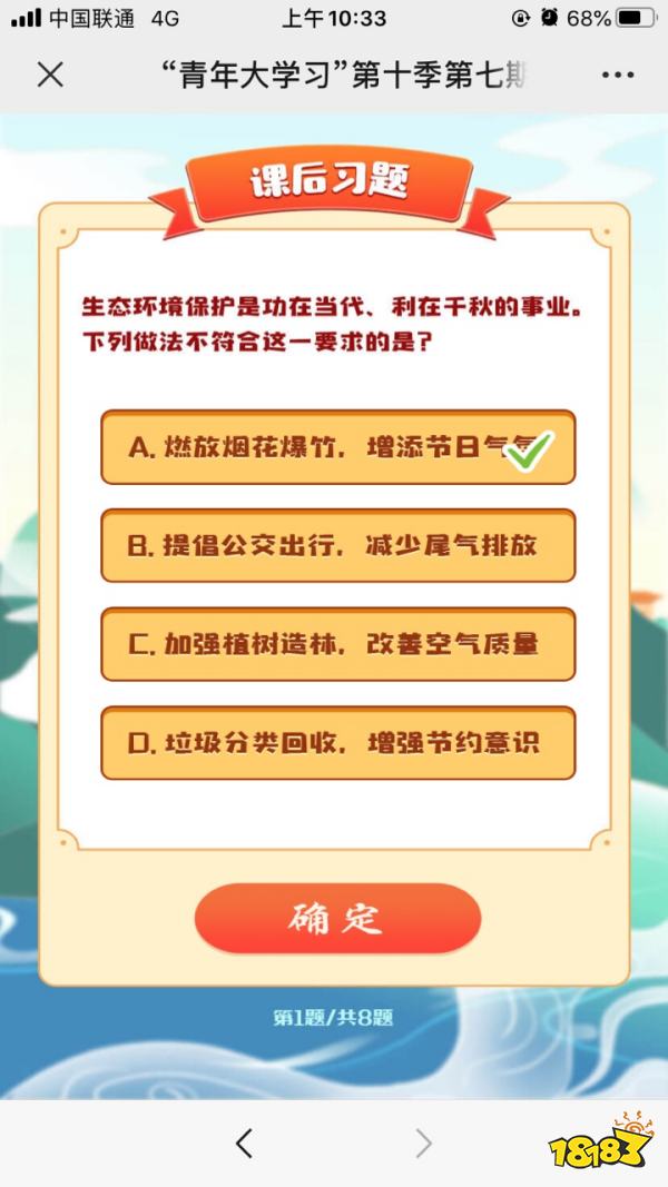 以上就是小编带来的生态环境保护是功在当代、立在千秋的事业答案,青年大学习第十季第七期第1题答案了,更多相关内容,请关注18183手游网。